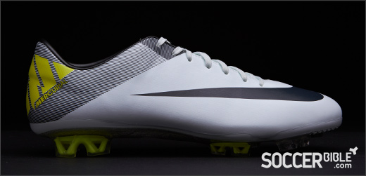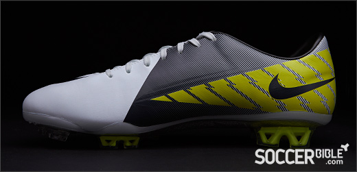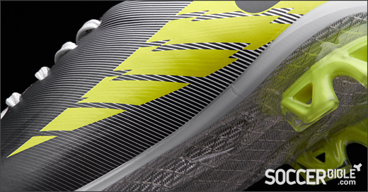 No other football boot screams speed quite like the Nike Mercurial range. The new volt lightning bolt stands-out to serve Nike's claims of enhancing on-pitch visibility, unlike the slightly toned down purple versions which match the main upper of the boot.