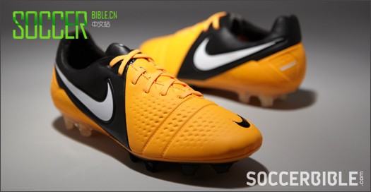 Nike's charge into 2013 has begun, and as the brand once again aims for big things, each of their boot silo's are to receive refreshing updates for the new year. The CTR360 takes on this bold two-tone citrus/black combination decorated with a white 'Swoosh'.