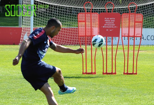 When the lads arrived at the training pitch to prepare for the upcoming friendlies they were greeted with a huge message printed on the pitch. It read "New Shirt, New Era, Make it Yours" which was a nice touch courtesy of @nedoz9. Also given some extra motivation whilst practising freekicks was Walcott, whose dummy wall bore another message.