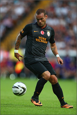 Sneijder's HyperVenoms are a top match for his Galatasaray kit and the Dutch star has comfortably slipped into the HyperVenom from the T90. After making the brave switch from Dortmund to Bayern Munich, Mario Gotze will be laced up once again in the Mercurial, which is coincidently a better match for Dortmund's kit. We're edging towards Gotze on this one, Mr Sneijder is just on the other side of the hill.