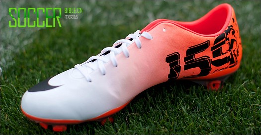 The Nike Mercurial Vapor IX Abby Wambach 159 features an orange to white gradient fade leather upper with the magic number shattered onto the side of the boot. The record breaker pays tribute to her teammates and family on the insole of the boot where the words “If One of us is Good, Then All of us are Great” are printed.