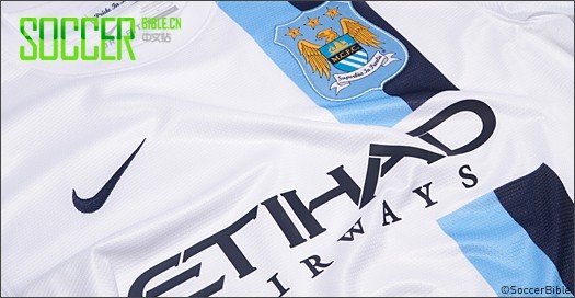 The new third shirt features a two toned stripe which runs down the left hand side of the shirt from top to bottom on which the City crest sits. The block stripes are joined by a navy Nike Swoosh and navy Etihad Airways sponsor which when placed on the white backdrop creates a clean and simplistic looking kit that doesn't completely lose the traditional City sky blue.