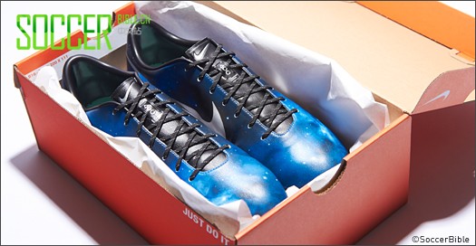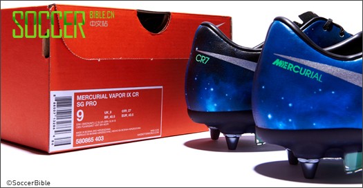 Officially marked as the sixth signature shoe to the CR7 collection, the new Mercurial IX CR7 Galaxy features a matte silver swoosh emblazoned on top of a deep blue and black galaxy print. The all over print is of the Star Vela Supernova and includes a seven star path print, paying homage to Cristiano's shirt number.