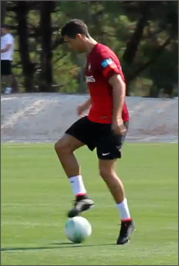 Lets speculate a little. Early suggestions point to something never before seen in modern football. As our pictures reveal, Ronaldo's boots have a unique design with a raised sock-like profile around the heel and ankle area - a similar feature to the boots recently seen on the feet of Barcelona duo Andres Iniesta and Pedro. A new innovation for Nike's top-tier boots?