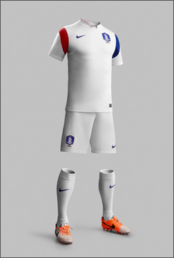 “The clean and crisp white kit, with highlights of red and blue, is visually stunning,” said Korean National Team midfielder ChungYong Lee. “Coupled with performance innovations that cool the body, this kit will play an important role for us in the heat and humidity of Brasil this summer."