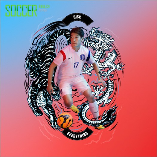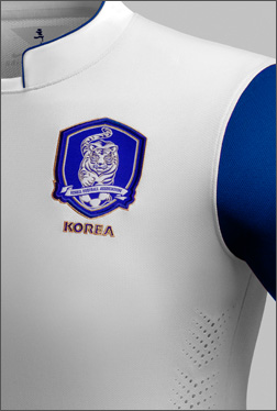 The design team wanted to give Korea a unique collar, one that has clear Asian influences and draws inspiration from classic Korean attire. Inside the back of the neck, a pennant tab features a Tuhon symbol in traditional Korean calligraphy that translates as "Fighting Spirit" and represents the inherent qualities of Korean football.