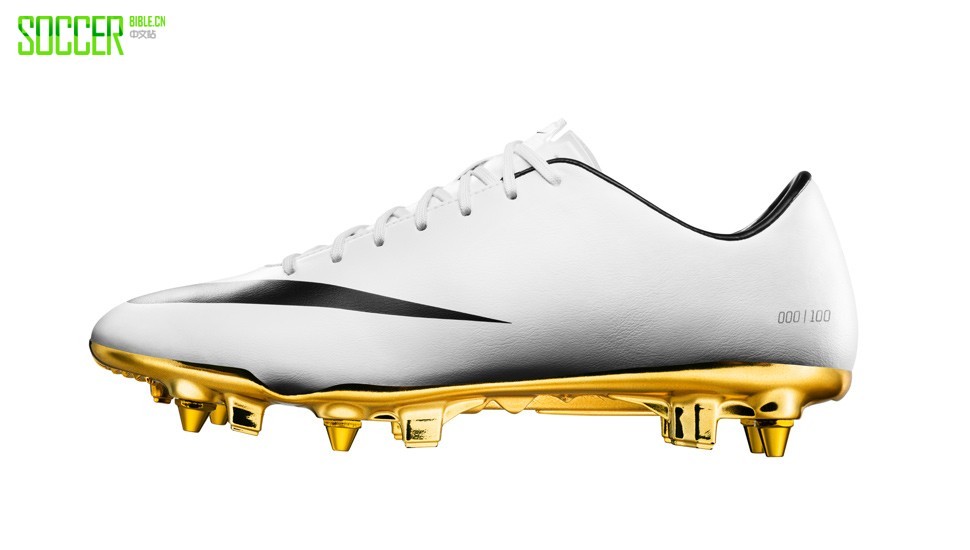 2014 | Nike Mercurial Vapor IX CR7 Special Edition - April 2014 saw the most recent addition to the CR series with another Special Edition boot created to celebrate Ronaldo's Ballon d'Or victory. Officialy recognised as the world's greatest footballer Ronaldo was presented with one of just a hundred gold sole-plated Mercurial which was worn in the el clasico Copa del Rey Final.