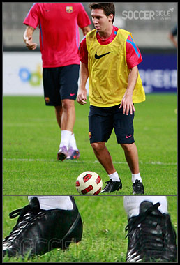 There has been a lot of excitement about Lionel Messi's black-out adiZero's. Unfortunately though, we can confirm he was just wearing his original blacked out adiZero I versions, as you can tell by the tongue that has slipped to one side, the leather stitching on the instep and the lacing system.