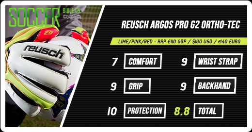 The Reusch Argos Pro G2 Ortho-Tec is a great glove packed with technology. The only thing we could grumble about is the fit of the keep control feature but this will appeal to some other keepers. The bones are brilliant, lightweight and flexible thanks to the palm embossing. A brilliant glove that is easy to see where your money is going when purchasing a pair of these.