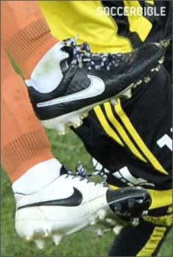 Like Anelka, Osasuna's Acuna has sorted himself out with a custom pair of white/black Nike HyperVenoms. The on-loan Watford man has stripped back the style to create a classy look that's a big step away from the brighter paint jobs to land on the silo. |