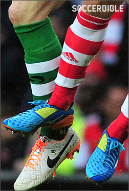 The boot spot of the week came in the French Cup match between Bordeaux and Ile Rousse. Lionel Sauli of the fifth division side was sporting the very first ever pair of adidas F50's, originally launched in 2004. A decade on and the boot has progressed dramatically but Sauli's first generation boots are still going strong. |