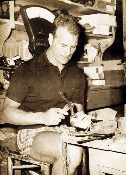John Charles in the Pantofola d'Oro (Golden Slipper) workshop.