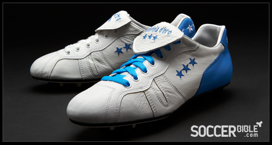 The new White/Blue Pantofola d'Oro Dream Napoli Canguro football boots are available to order now from limited retailers and are priced around £120 GBP / $200 USD / €145 EURO.