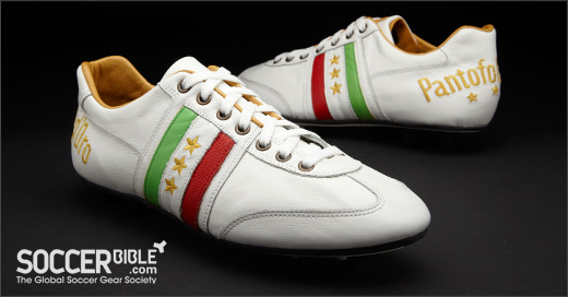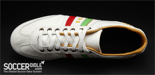 The new White/Tan/Italia Pantofola d'Oro Piceno Vitello Italia boots rank among some of the best looking soccer shoes we've seen all year – and we're lucky enough to see a lot of boots! In recent years Pantofola d'Oro have set their own standard in boot design, producing some of the best quality traditional soccer shoes around! Take a look at their latest creation and share your thoughts online, on Twitter and on Facebook.