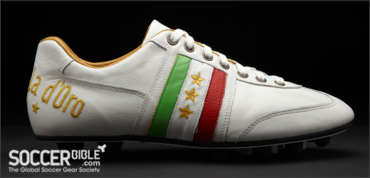 The new White/Tan/Italia Pantofola d'Oro Piceno Vitello football boots are available to order now from limited retailers and are priced around £110 GBP / $170 USD / €130 EURO.