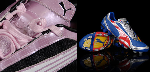 The Puma v1.08 football boots three new re-designs include two new striking colourways and an all black kangaroo leather option. Worn by international footballers Samuel Eto'o, Nicolas Anelka, Mauro Camoranesi and David Bentley the v1.08 football boot's popularity and performance have grown momemtum recently thanks to consistently outstanding displays from both Anelka and Eto'o.