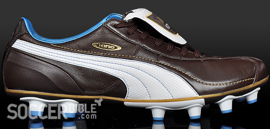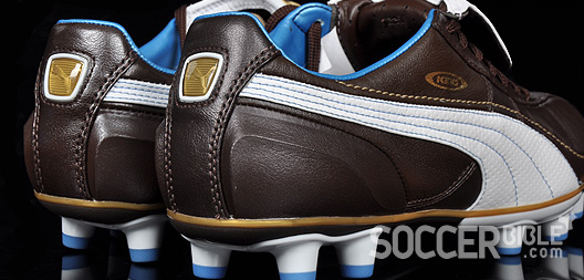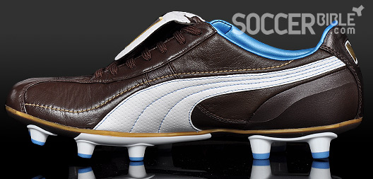 They say that first impressions are very important, well when we first received these new Puma King football boots our first impression was that they looked class! The colour combination of chocolate brown and cindre blue really looks good, and fits the Italian style these boots represent.
