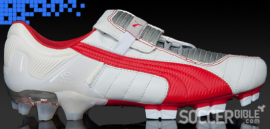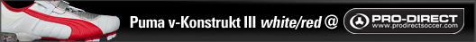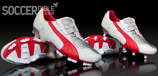 These are the new Puma v-Konstrukt III football boots, a uniquely constructed boot designed to deliver power, which has been given a classy white/red/silver makeover...