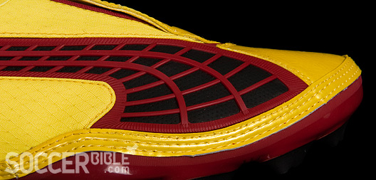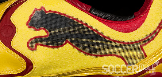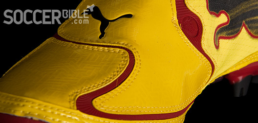 The design of the Puma form-stripe is a bold feature of the new v1.10 football boots, but it serves a purpose. The chili pepper red area, which continues onto the instep of the boots, is a thermo-plastic that not only adds stability to the boot's shape, but its texture offers enhanced ball grip.