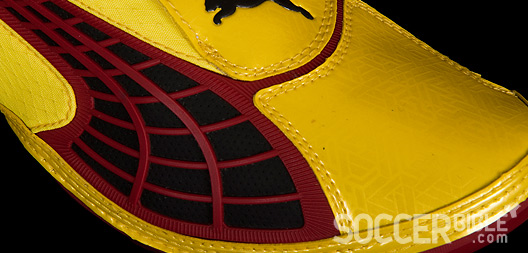 Once you get over the initial amazement of the unique design of the Puma v1.10 and the new blazing yellow/black/chili pepper colourway, your eyes are drawn to the innovative new features.