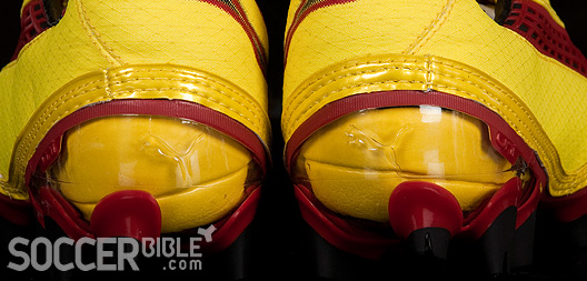 The heel area of the Puma v1.10 football boots also utilises another material, but once again Puma have got it right. The transparent heel counter which allows you to see the boots insole, is solid to provide the required heel stability, support and protection.
