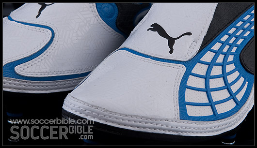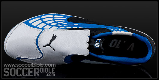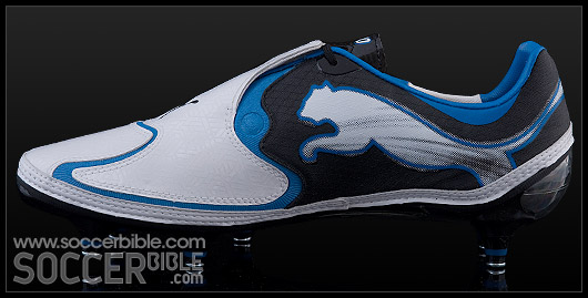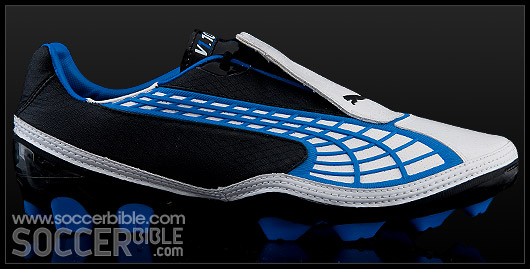 The Puma v1.10 football boots have been around for a short while now, and there is no denying they are one of the most innovative and radically designed boots currently on the market. The Puma v1.10 football boots are visually striking, and these white/black/blue versions are a classy addition to the range.
