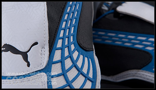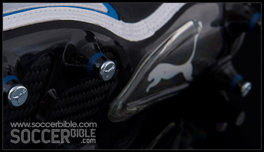The striking design feature of these Puma v1.10 soccer shoes is the Puma Royal form-stripe. Engineered from a thermo-plastic, the form-stripe is not just aesthetically pleasing but it's texture offers enhanced ball grip, and support the boot's shape and structure.
