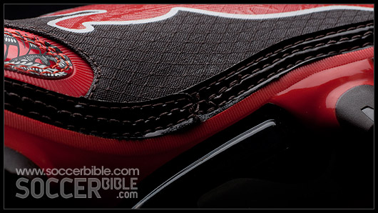 The microfibre material adorned in the Kehinde Wiley print covers the fore-foot and lace-cover, and provides a clean striking surface. Similar to a thin leather, the microfibre is soft and flexible, but has the advantages of being highly abrasive resistant.