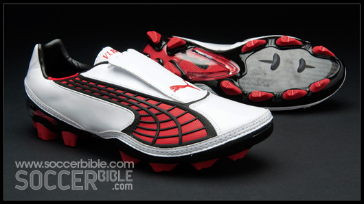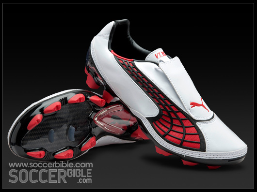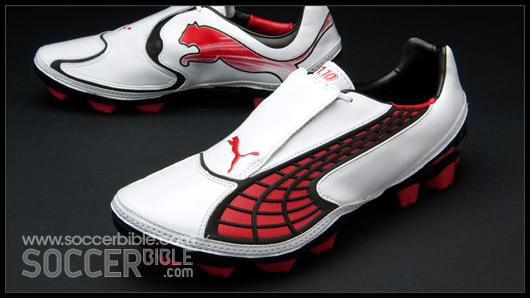 The striking design feature of these Puma v1.10 soccer shoes is the Puma Red and black form-stripe. Engineered from thermo-plastic, the form-stripe is not just aesthetically pleasing but its texture offers enhanced ball grip, and supports the boots shape and structure.