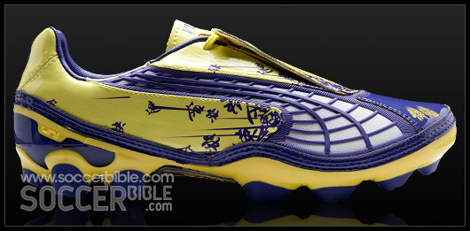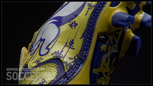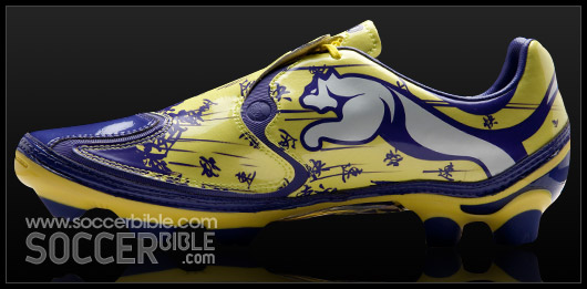 Having established the Puma designers have a taste for the eccentric, we have to confess we're not quite sure of the reasoning behind these Kanji versions, but can't deny they make for a great looking boot. "Kanji" are actually traditional Chinese characters used in modern Japanese writing, hence the scriptures adorning the boot, and if we understand correctly, the symbols on the toe mean 'speed'.