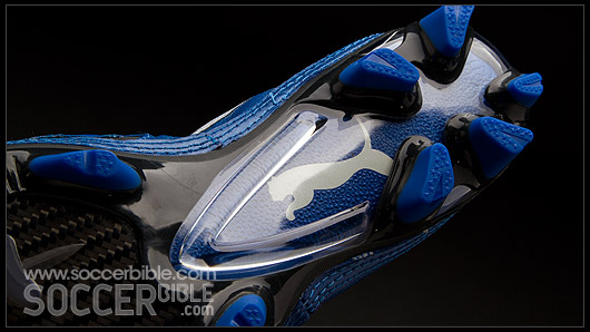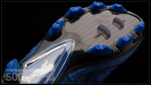 Embedded into the forefoot of the sole-plate is a carbon-fibre plate, positioned to distribute pressure and react to the foot flexing. Finishing off the outsole is a unique stud configuration, mounted on a lightweight frame, and shaped for smooth ground penetration to optimize traction.