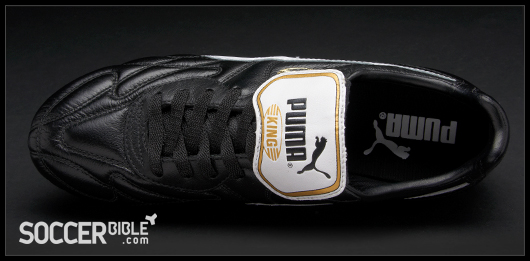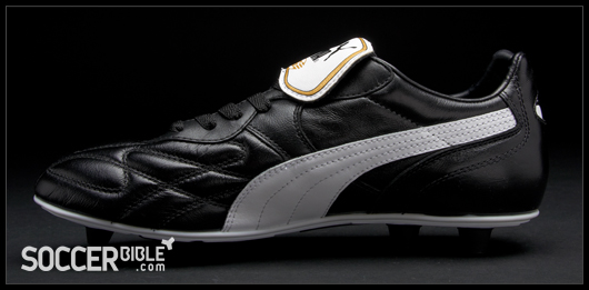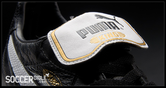 Classic style is provided through the traditional black and white upper. The Puma King Top 1982 remains one of the few boots to still feature the classic fold over tongue - an endangered feature in modern day football boots! Designed with a gold trim and the iconic Puma King logo, the fold over tongue is a feature of a true heritage boot.