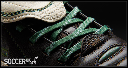 The ECO Finale retains the design characteristics of the latest incarnation of the King, with the vamp stitched with tight-rows to improve longevity and to help avoid stretching of the leather. The traditional fold-over tongue, which is kept down by a hook-and-loop fastener provides a cleaner kicking area and improves pressure distribution upon ball impact. Plus, the central lacing system providing comfort and securing wearability for various foot shapes, and to continue the eco theme the laces are made of 100% recycled yarn fibers.