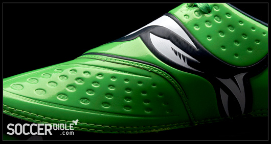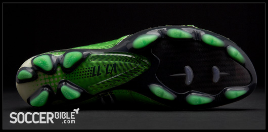 In addition, the new v1.11 soccer cleats enable greater playing stability, through an external heel counter and a Pebax frame that provides support to the outsole. The midfoot area is reinforced with a TPU composite which secures further stability and helps to avoid midfoot bending. This increased stability also enables an optimal traction as well as manoeuvrability, provided through the pointed stud configuration featured on this new boot.