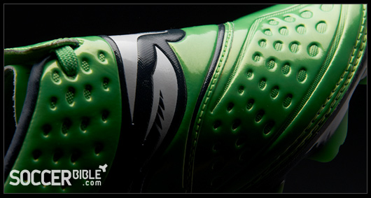 Puma have dropped their textile material, and instead the Puma v1.11 soccer shoes features a premium lightweight microfiber upper material. Softer than on previous incarnations, the new upper gives a comfortable fit and great ball feel, with slight padding around the toe area for enhanced ball control and touch. Finished in this bright green, the Puma v1.11's will be very visible on the pitch and create a unique look.