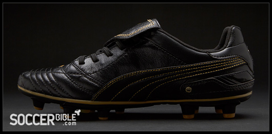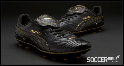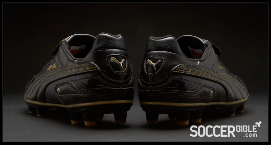 Taking it's design cues from Puma's 1986 Mexico Finale boot, the King Finale is revamped with modern technology and materials. However, the white Form-stripe and yellow detailing on the launch King Finale, which shows the clear similarities with the '86 boot, has been replaced with stylish black and gold detailing.