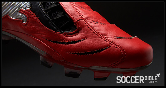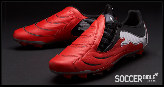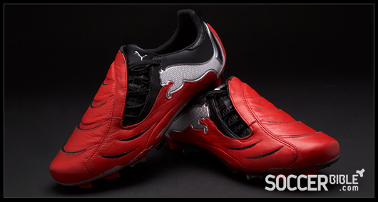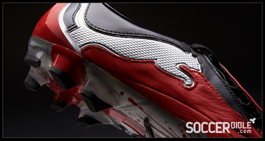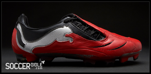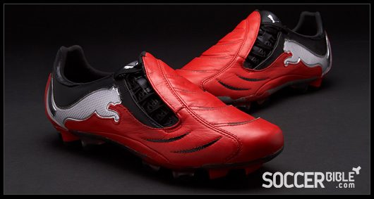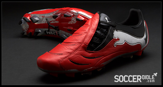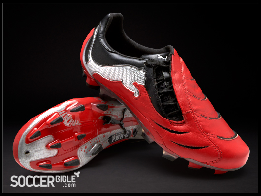 The new Red/Black/Silver Puma PowerCat carries a tougher and meaner design than previous creations. The strength and power associated with the 1.10 range is epitomised by players such as Nemanja Vidic, while the boots ball striking and manoeuvrability technology appeals to an array of professionals, proven by the PowerCat's varied player roster.