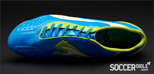 The new PUMA V1.11 SL soccer shoes come fully equipped with a super-soft and ultra-thin microfibre synthetic upper that features new unique padded zones for improved ball contact, further enhanced by the new 'hidden' lacing system on the instep. The extremely soft upper material is great for comfort and ball feel, while providing slightly more protection than the V1.10 SL.