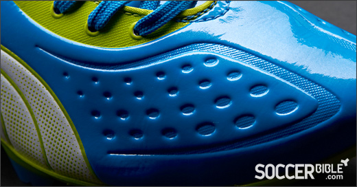 To further aid player support and movement, the external heel counter on the PUMA V1.11 has been shaped and bonded to the upper, with strategically removed material to maintain a lightweight boot. As has proven a success in the standard V1 range, carbon fibre has been integrated into the outsole of the PUMA V1.11 SL soccer shoes to enhance player movement through reactivity, flexibility and mid-foot stability.