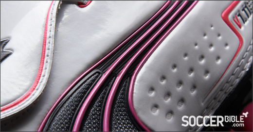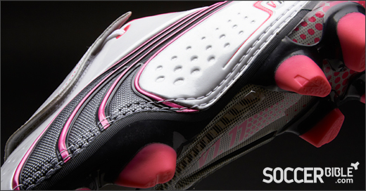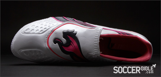 The central lacing system has been made easier to access with the introduction of a new lace-cover, probably the most striking feature. The lace-cover provides a unique look and is adorned with the Puma motif. It is held down by an elastic strap and a TriHook fastener to ensure a snug fit and tighter fastening than the previous v1.10.