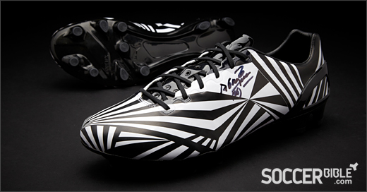 PUMA have been testing their new materials, technology and innovations with Sergio Aguero, and the boots appear to have been met with the strikers approval. It's quite a coup for PUMA to have Aguero on board, the Manchester City striker is one of the most prolific and talented young strikers in the game, not to mention he scored a certain dramatic title-winning goal! So Aguero should know a thing or two about how a boot should perform. Aguero's signature appears on one of the few clear spaces, as these are the most crazy-looking and decorated football boots we've ever seen! The inspiration for which stems from the 'Razzle Dazzle' camouflage pattern which distorts the lines and shapes of an object, something used by car manufacturers when concealing a new model or on a WWI battleship! As boot fans the opportunity to get our hands on a pair of these PUMA concept football boots has been an amazing one for us, and of course we've been keen to share this experience with our SoccerBible fans. Receiving a pair signed by Sergio Aguero has been the icing on the cake, and we couldn't wait to photograph and share the boots with the SB community, our thanks of course go to PUMA and these will now take pride of place in our SoccerBible boot cabinet. One of the most extraordinary football boots to be released on limited edition, receiving a signed pair of the Puma Camo Test football boots has been quite a unique experience and one we've been keen to share with the SoccerBible community! We'd love to hear your thoughts online, on Twitter and on Facebook.