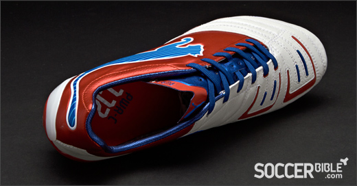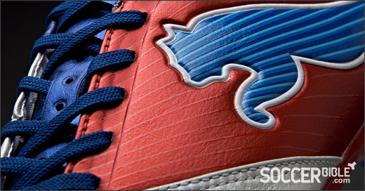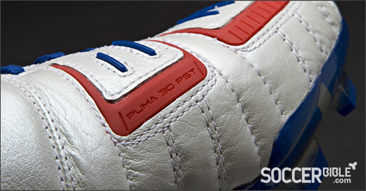 The newly created Puma 3D PST DUO technology enables improved grip on the ball through its exposed elements, and instead of absorbing the energy it increases the kicking power of the player. The kicking area is enhanced by a soft K-Leather while the lightweight microfibre material in the lateral quarter supports the mid-foot and helps to keep the weight of the boot to a minimum.