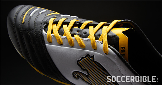 The kicking area of the PowerCat 1.12 SL is enhanced by a soft K-Leather while the lightweight microfibre material in the lateral quarter supports the mid-foot and helps to keep the weight of the boot to a minimum.