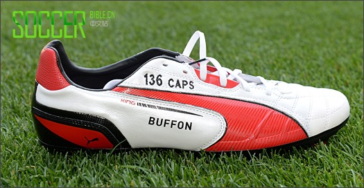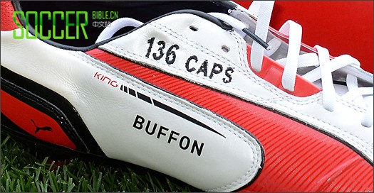 On Tuesday night Gianluigi Buffon won his 136th international cap for Italy, equalling Fabio Cannavaro's appearance record for the Azzurri. The 35-year-old was presented with a special pair of PUMA King football boots before he took to the field in Italy's 2014 World Cup Qualifier match against the Czech Republic.