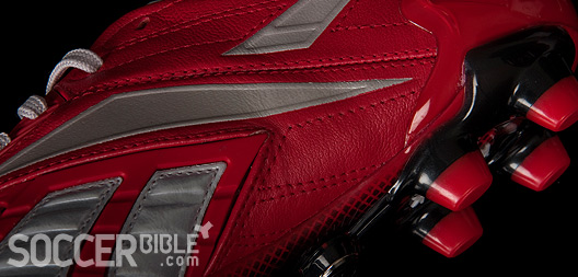 The Power Unit Technology continues in the sole plate with strategically positioned carbon fibre inserts. These are placed in the forefoot of the sole plate, and allow only a one-directional flex of the boot. This technology works on the same principle as the adidas Predator Powerspine, as it accommodates the natural movement of the foot but reduces deformation when striking the ball, so the metatarsals don't bend back unnecessarily far to not waste energy and power.