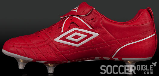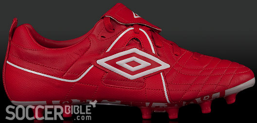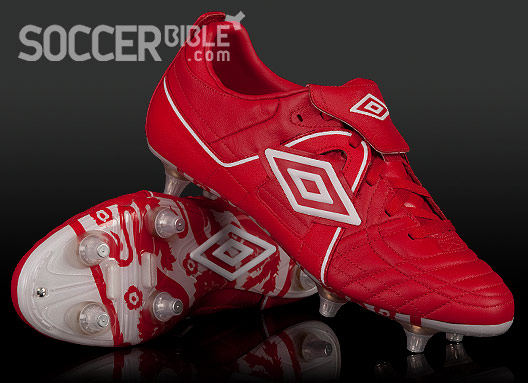 The style and design of the England Red Umbro Speciali football boots, is a perfect compliment to the new England away strip to be worn at the 2010 FIFA World Cup. The red colourway matches that of the shirt, and the white detailing draws attention to the white cuffs on the football shirt, plus these boots will really stand out against the red and white socks.