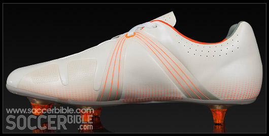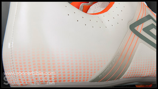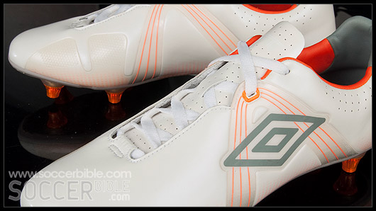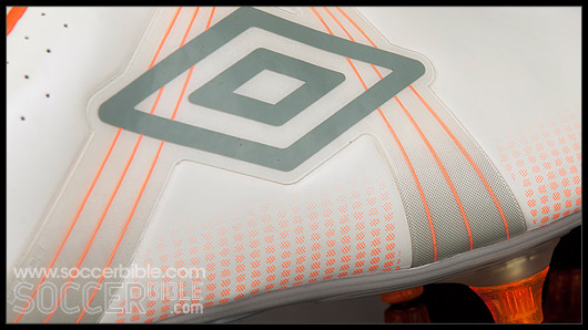 Umbro are proud of the TPU upper "A-Frame Cradle" which gives the GT it's distinctive look. This functional component supports the midfoot area and aids heel lock and the overall fit - something carried over from the successful Speciali series. There are plenty of "strategically placed" perforations across the ankle collar, tongue and sockliner to aid cooling and further reduce weight.