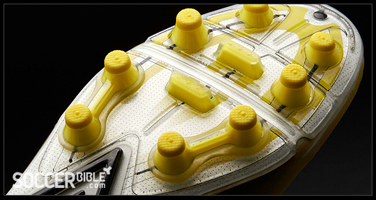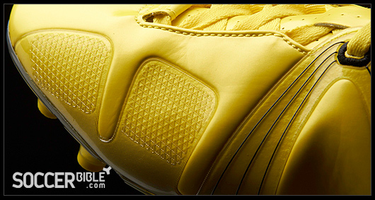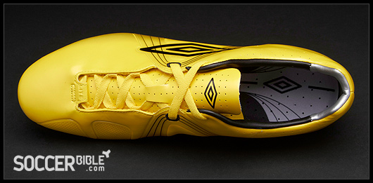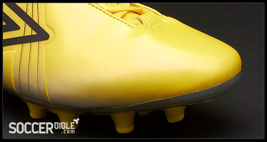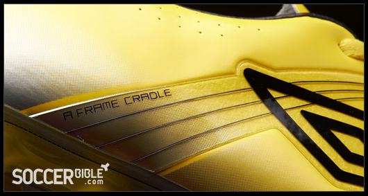 The stand-out feature of the Umbro GT Pro soccer cleats, which interrupts the smooth upper, is the TPU "A-Frame Cradle". This functional component supports the midfoot area and aids heel lock and the overall fit, boot slipping is an issue for players so the 'Flywire-esque' A-Frame helps to lock the foot in position.