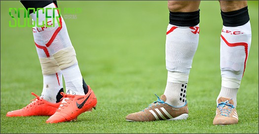 | 沙尔克04的年轻球员勒罗伊-萨内穿上了一双非主流个人特色的Tiempo Legend V战靴。不仅没有在球鞋上添加任何东西,他还把球鞋两侧的Nike'Swoosh'标志给拆掉了。球鞋看上去空荡荡的,真是个古怪的设计。 | |