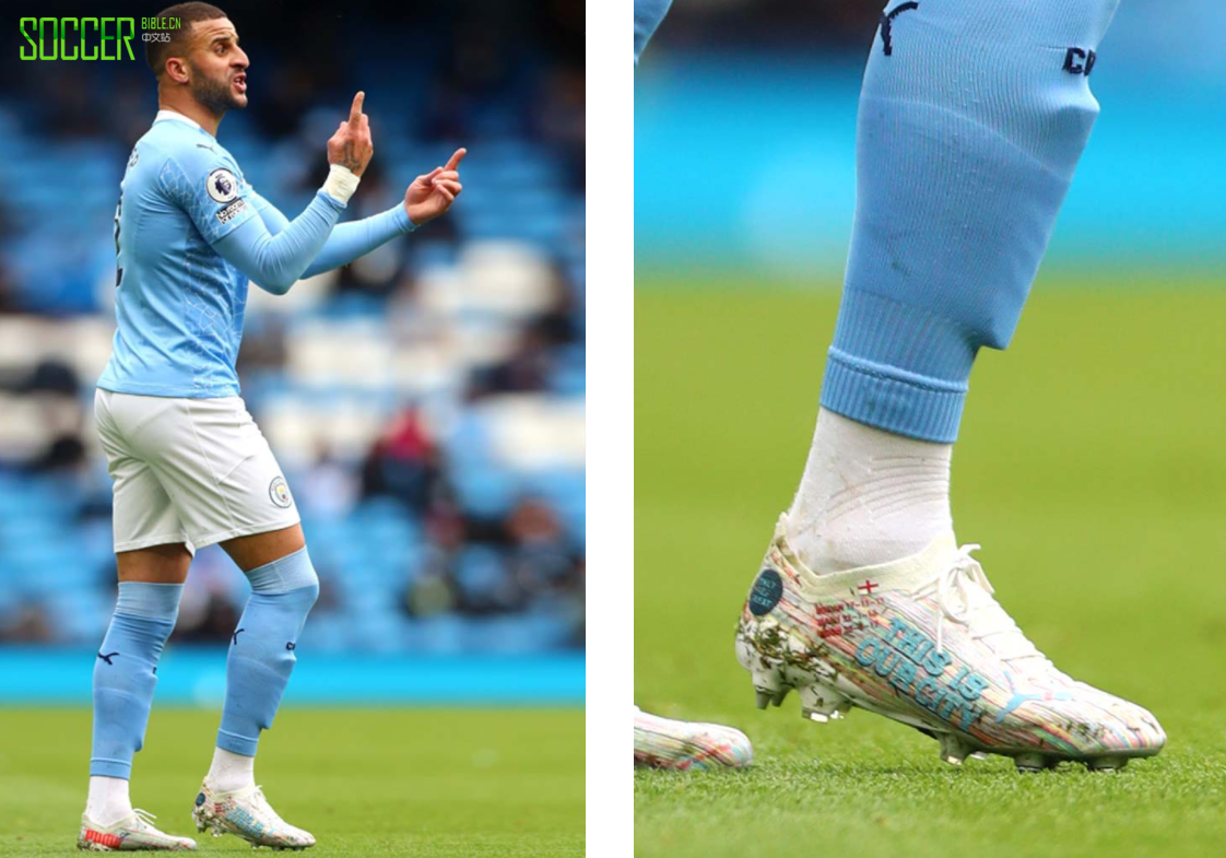 阿圭罗不是唯一收到特别款球鞋的人,彪马联手设计师Silni为蓝月亮众将推出了特殊设计的配色球鞋,沃克也是其中之一。球鞋外观体现出"This is Our City" 的标语,并配备每一个人独有的小特点。